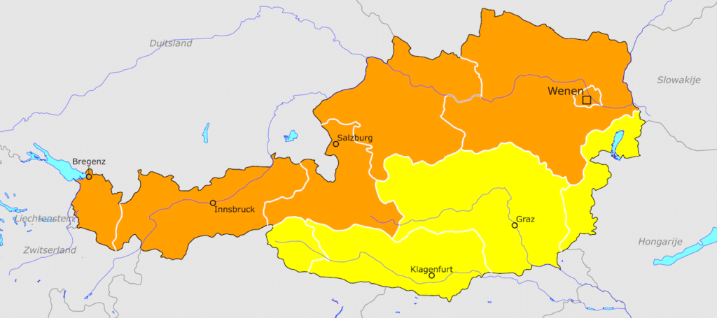 Na een verblijf in deze deelstaten moeten reizigers van BuZa bij terugkeer in Nederland 10 dagen in thuisquarantaine. Buiten de genoemde deelstaten blijft de kleurcode ‘geel’ (let op veiligheidsrisico’s) geldig. Dit geldt ook voor de deelstaat Ost-Tirol. U hoeft niet in thuisquarantaine bij terugkeer in Nederland als reizigers uit gebieden met kleurcode ‘geel’ komen. De thuisquarantaine geldt ook niet als hen die vanuit een ‘geel’ gebied rechtstreeks naar de luchthaven Wenen (Schwechat), de luchthaven Innsbruck, de luchthaven Salzburg en de luchthaven Linz (Hörsching) reizen.