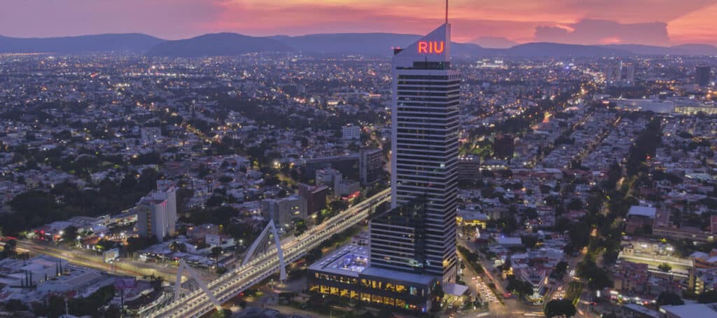 Het hotel Riu Plaza Guadalajara werd in 2011 geopend in een van de beste wijken van de stad, aan de López Mateos Avenue, een doorgang die aansluit op Expo Guadalajara, de industriegebieden en het historische centrum. Het viersterrenhotel biedt 550 kamers, plus een groot conferentiecentrum met zestien kamers. Guadalajara is de hoofdstad van de staat Jalisco en de op één na belangrijkste stad van Mexico.