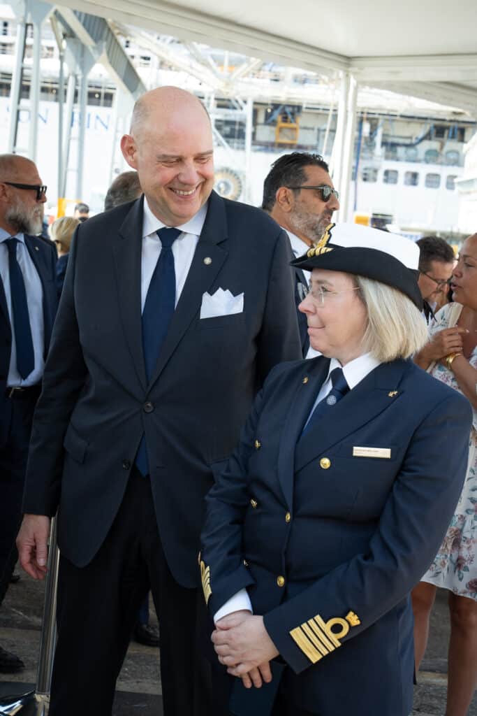Het traditionele maritieme evenement werd bijgewoond door Gianluigi Aponte, oprichter en voorzitter van MSC Group; Pierfrancesco Vago, Executive Chairman van MSC Group’s Cruise Division, de peettante van het schip Zoe Africa Vago, voor Fincantieri Pierroberto Folgiero, Chief Executive Officer en vertegenwoordigers van MSC’s bouwteam.