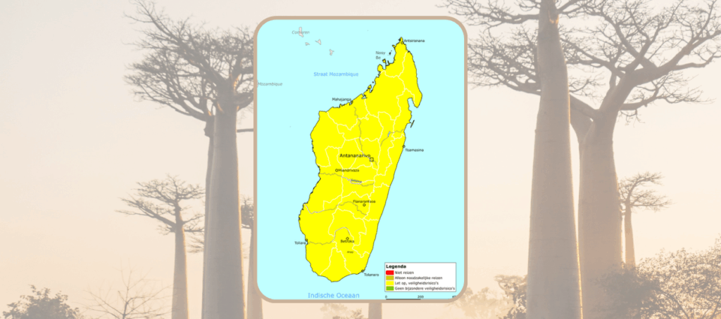 Het Ministerie van Buitenlandse Zaken (Minbuza) heeft de kleurcode van het reisadvies Madagaskar aangepast van oranje naar geel.