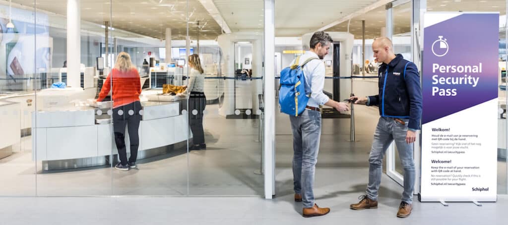 Reizigers die vertrekken vanaf Schiphol kunnen met ingang van vandaag met de proef Personal Security Pass online een tijdstip reserveren om door de veiligheidscontrole op Schiphol te gaan. Dit geldt voor een groot aantal vluchten naar een zogeheten Schengen-bestemming vanaf dinsdag 28 november tot en met maandag 11 december 2017. Reizigers die op deze dagen tussen 10.00 en 13.30 uur een vlucht hebben, gaan met de pass door een speciaal daarvoor ingerichte veiligheidsdoorgang.