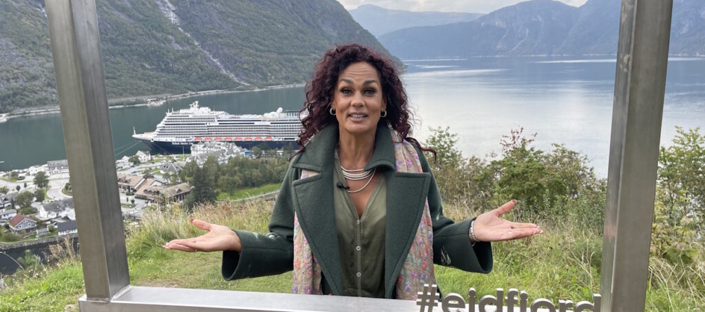 Foto: Chimène van Oosterhout laat de Noorse fjorden zien (Foto Holland America Line).